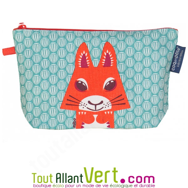 Grande trousse en coton bio Ecureuil 22 x 13 cm