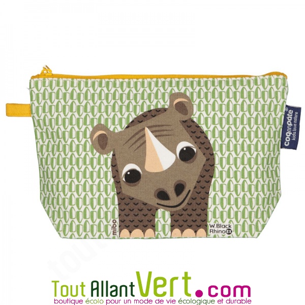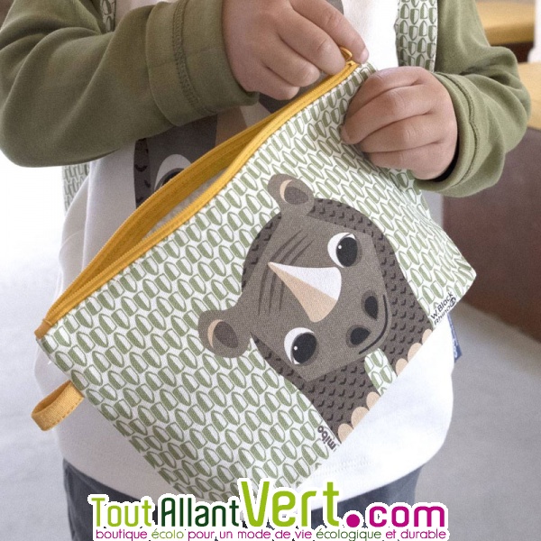 Grande trousse bio école enfant Rhinocéros 22 x 13 cm