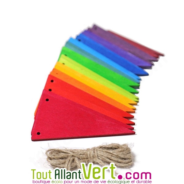 Guirlande 24 fanions en bois multicouleur.- A assembler avec la ficelle pour choisir la longueue de votre guirlande