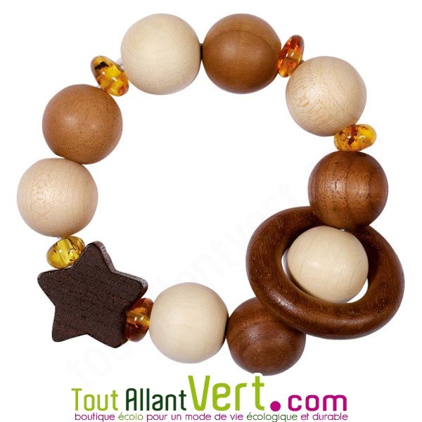 Hochet bébé en bois naturel et ambre véritable, étoile