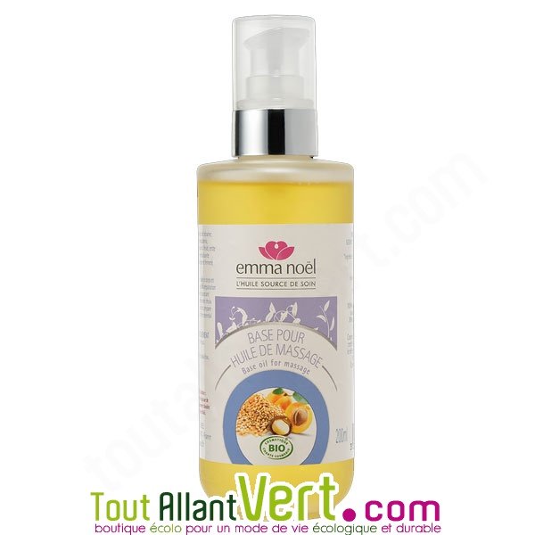 Huile de massage, base pour l'huile de massage bio, Emma Noël, 200 ml.- Idéale pour les mélanges à base d'huiles essentielles