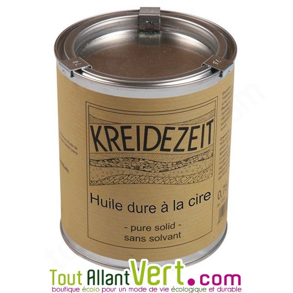 Huile dure à la cire sans solvant, pot de 0,75l.Cette huile s'utilise pour le traitement des surfaces en bois solicitées dans la maison, comme les sols, les parquets et les meubles, mais aussi le liège, la pierre, les sols béton ou les terres cuites à la place des huiles dures à solvant.