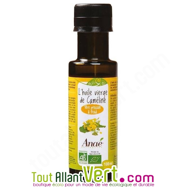 de AnaéCette huile multi-usage connue pour ses propriétés apaisantes, riche en vitamine et anti-oxydants. L'huile vierge de Caméline s'utilise dans la création de cosmétiques (crème de jour, de nuit, pour les mains, le liniment...) ou en cuisine pour agrémenté vos salades, plats ou encore en massage. Huile pressée à froid pour conserver toutes ses propriétés. Issue de cultures bio et Françaises et de qualité alimentaire. Bouteille en verre de 100ml. Certification AB. Marque: Anaé.
