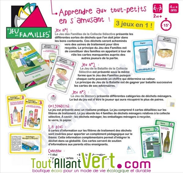 - 1 jeu de 36 cartes : le jeu des familles et le jeu de bataille de la collecte sélective,