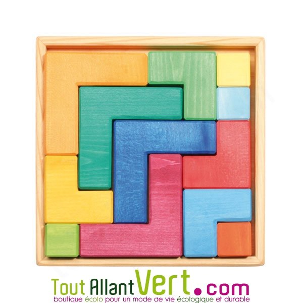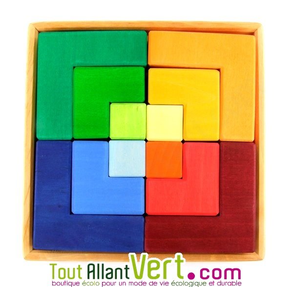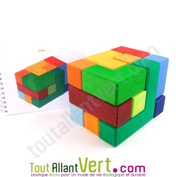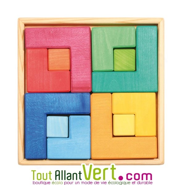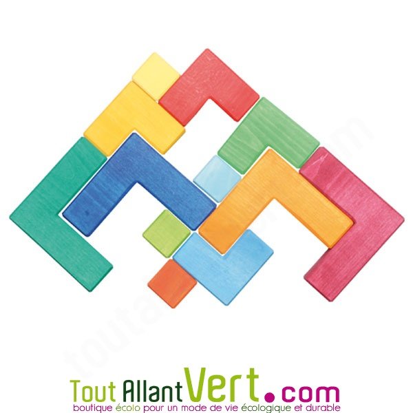 Jeu de construction créative en bois multi-couleur, 23x23 cm.Ce jeu de construction peut se jouer à plat ou en 3 dimensions. Il développe la compréhension des formes et des couleurs, stimule la créativité et permet l'apprentissage de la 3 dimensions.