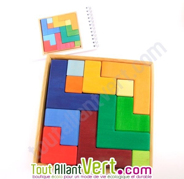 But du jeu : Le but est de reproduire une forme donnée en juxtaposant ou en superposant les 12 pièces en bois. Il existe beaucoup de formes pouvant être réalisées. (Un livret de figures est disponible, vendu séparément).