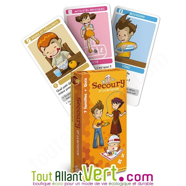 Jeu de 7 familles Secoury sur l'Alimentation et la Nutrition avec Quiz.Un jeu de 7 familles classique avec un quiz en plus ! Le thème abordé porte sur l'alimentation et la nutrition. Il parle des différentes familles d'aliments et permet aux enfants d'apprendre à avoir une alimentation équilibrée tout en s'amusant.