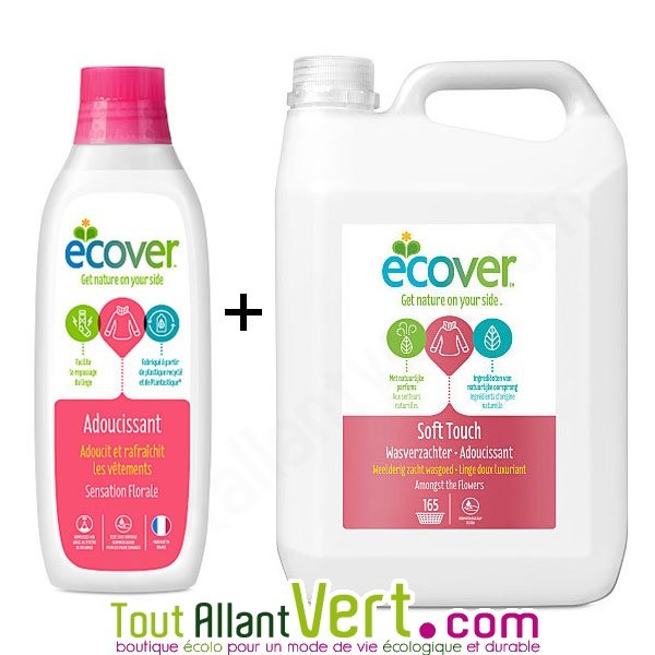 de EcoverAdoucissant textile écologique 5 + 1 litres pour la recharge. Le conditionnement écologique et économique ! Moins de déchets ! Plus pratique car moins lourd avec la bouteille 1 litre à recharger. Ce n'est pas trop lourd à soulever à chaque machine, c'est économique et bon pour l'environnement. Il vous suffir...Ce produit ne fait plus partie de notre catalogueCet article n'est plus disponible à la vente chez nous.Découvrez d'autres produits