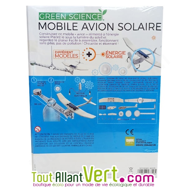 Amusant et étonnant, ce jeu de construction ludique sensibilise les enfants aux énergies renouvelables. Il permet de construire un mobile avion qui planera grâce à l'énergie solaire. Envergure de 45cm lorsqu'il est complètement déployé. Facile à assembler. 5 ans et +.