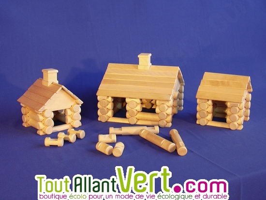 Multiples combinaisons pour créer ses chalets en bois. 110 pièces en érable finiment poli. Le bois provient de forêts gérées durablement et écologiquement avec certification.