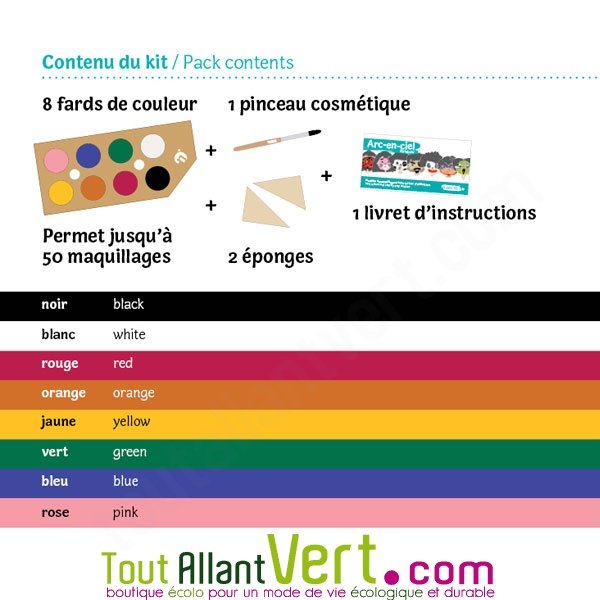 Ce kit de maquillage pour enfants est bio et naturel. Enfin du maquillage pour enfants bons pour la santé et bons pour l'environnement. Idéal pour les déguisements lors d'évènements festifs, d'anniversaires, de kermesses, de fêtes de fin d'année d'école et évènements avec les enfants.Un maquillage bio pour enfants!
