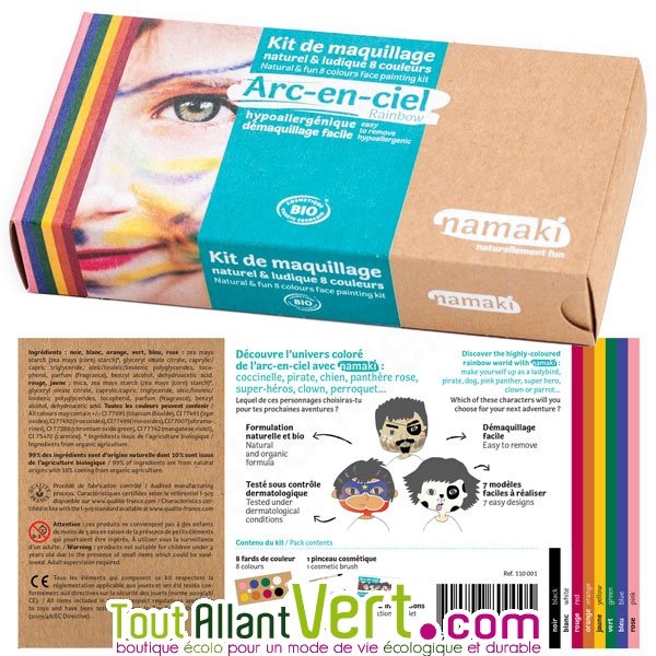 Kit de maquillage bio pour enfants 8 couleurs Arc-en-ciel, Namaki