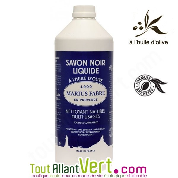- Le savon noir 1 litre ou "Nettoyer toutes les surfaces". Savon à base d'huile d'olive, il est parfait pour les sols, les vitres, les plans de travail... pour détacher et dégraisser.