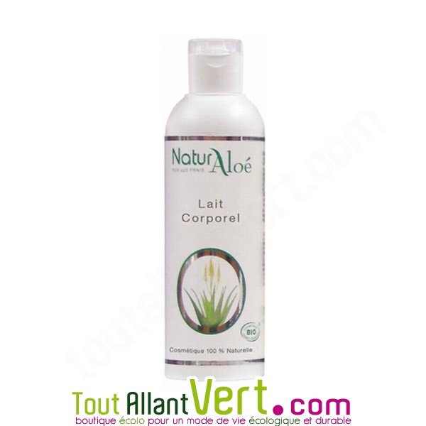 Lait corporel bio NaturAloé, 200ml.Ce lait pour le corps convient à toute la famille et pour tous types de peau et plus spécialement les peaux sensibles comme la peau de bébé. Sa texture fluide pénètre immédiatement.