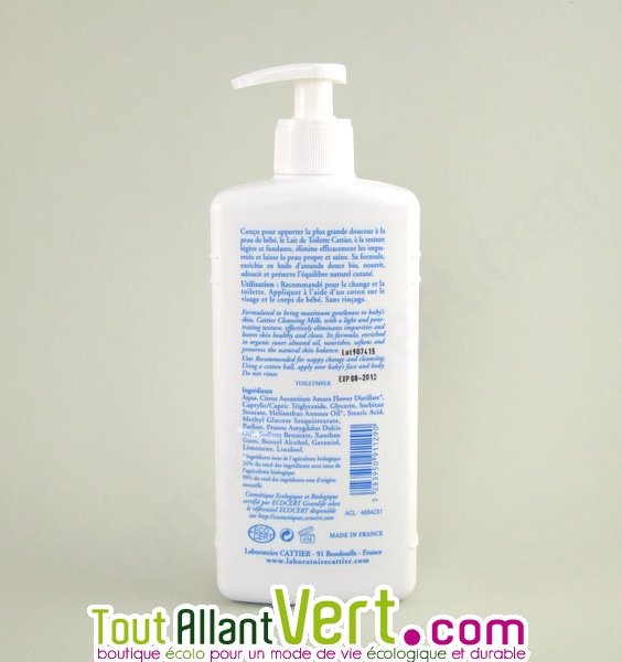 Lait de toilette bébé visage et corps à l'amande douce et au calendula bio, 500ml, Cattier.- apporte douceur à la peau
