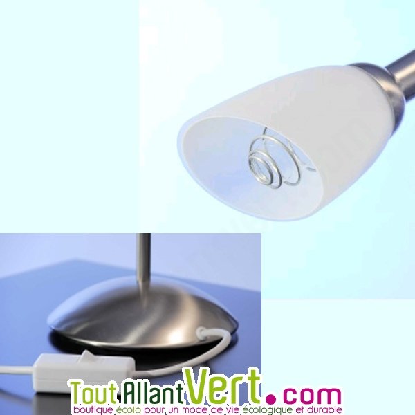 Cette lampe de table ou de bureau, avec réflecteur en verre et métal brossé, a été éco-conçue tout en réduisant au maximum les champs électromagnétiques pour faire disparaiître les nuisances électriques. Lorsque l'on sait que une lampe de table traditionnelle emet des champs électromagnétiques à proximité du lieu où l'on travaille ou l'on lit, cette lampe est une vraie alternative.Système de réduction des champs électromagnétiques