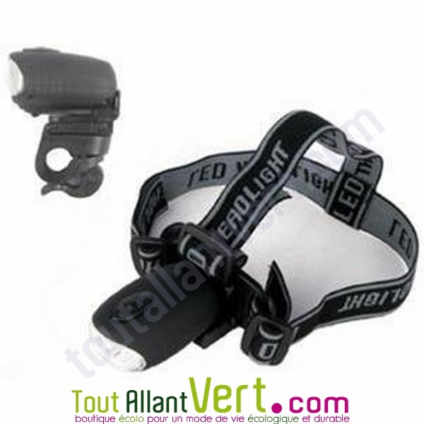 Lampe frontale + support vélo, à dynamo, 3 LEDs.Cette lampe à énergie renouvelable ne vous laissera pas sans lumière, elle se recharge par dynamo. Légère, résistante et confortable grâce à son bandeau réglable, une minute de manivelle assure 40 minutes de lumière. Idéale pour suivre un chemin la nuit, faire une randonnée nocturne, elle libère vos mains pour lire ou jouer sous la tente ou encore lors d'une réparation sous la voiture.