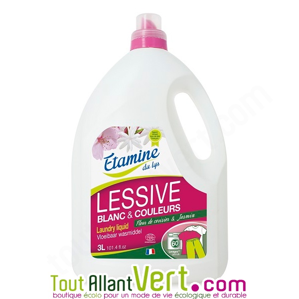 Lessive liquide fleur de cerisier et jasmin, 3 litres. - Prend soin de votre linge tout en le nettoyant
