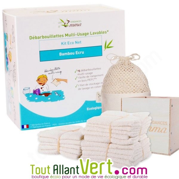 15 lingettes essui-tout lavables en Bambou + 1 filet pour machine à laver + 1 boite en bois PEFC.Ces lingettes ou débarbouillettes sont lavables et réutilisables. Absorbantes, elles s'utilisent comme votre essuie tout jetable, mais ne se jette pas à la poubelle !