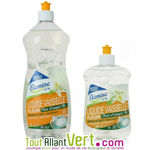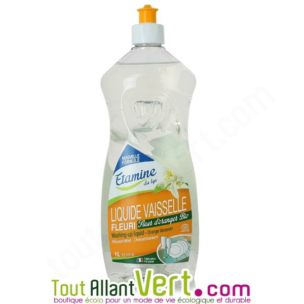 Ce liquide vaisselle a une senteur unique : fleur d'oranger bio. Il nettoie, dégraisse et fait briller votre vaisselle. Il est doux et respecte le Ph de la peau de vos mains. 2 contenances au choix : 500ml ou 1 litre. Fabriqué en France par Etamine du Lys.