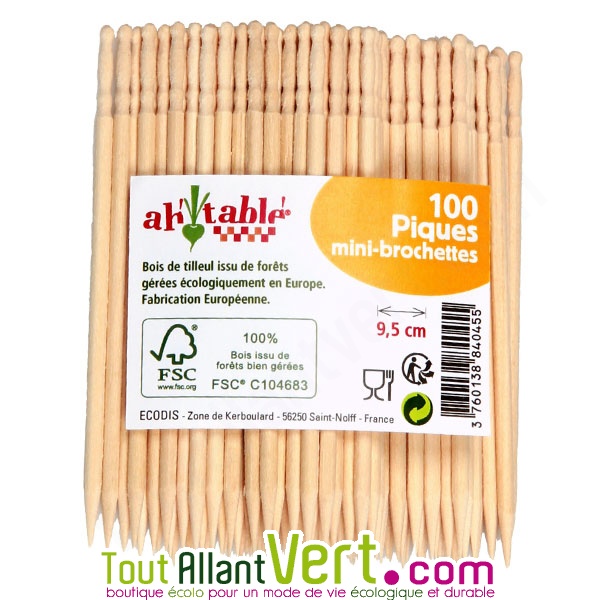 de Ah Table★ ★ ★ ★ ★4 avis clientsLot de 100 pics en bois de 9.5cm pour vos apéritifs, mini-brochettes... En bois de tilleul certifié . Idéal pour faire des mini-brochettes et autres déco culinaires. Fabrication Européenne.