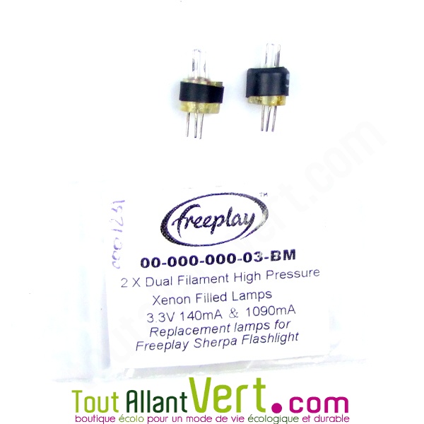 2x Deux ampoules de rechange pour la lampe torche Sherpa de FreeplayFilament dual haute pression Lampe à Xenon3.3V 140mA & 1090ARéférence: Freeplay 00-000-000-03-BMLire la suite...Livraison pour Noël garantie en choisissant Chronorelais pour toute commande payée jusqu'au mardi 23/12 11h00.