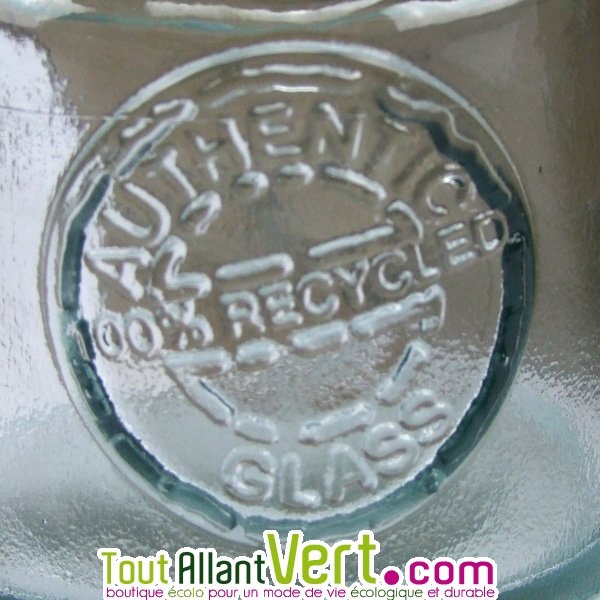En verre recyclé épais et solides. Avec une gravure en verre et en relief sur le devant qui indique bien l'origine du verre : "Authentic 100% Recycled Glass" (Autentique 100% verre recyclé).