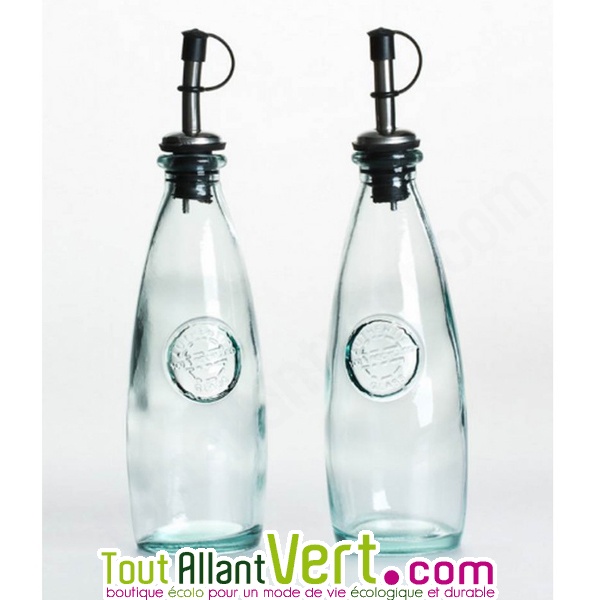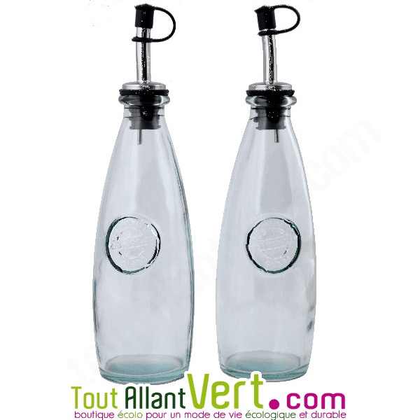 Lot de 2 bouteilles à huile en verre recyclé.Idéal pour conservation de l'huile ou du vinaigre.