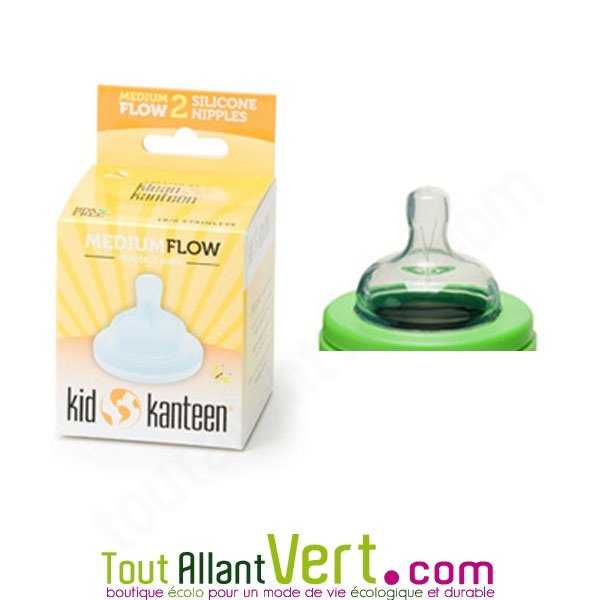 Ces lot de 2 tétines en silicone de qualité médicale s'adapte aux biberons 148ml ou 267ml en inox de Klean Kanteen :- Débit moyen: 6 mois et +