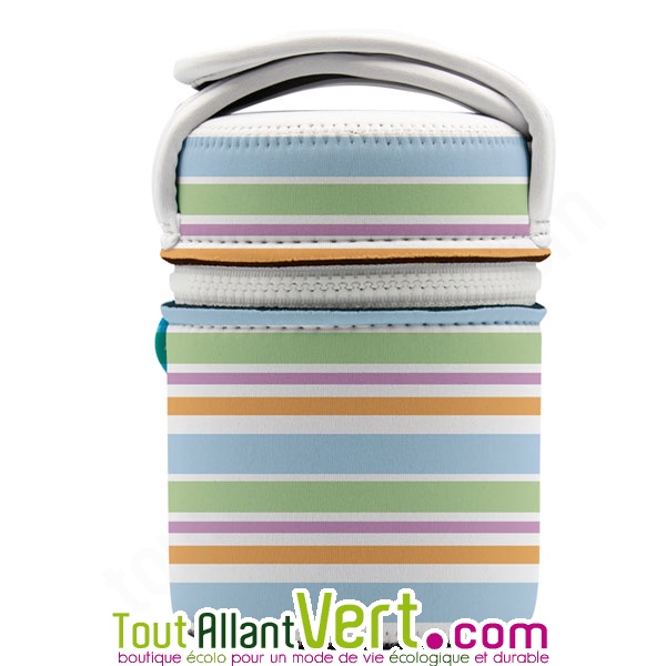 Lunch Box isotherme inox avec housse néoprène blanche à rayures multicouleur, 0,5L.- 100% étanche