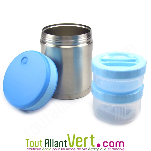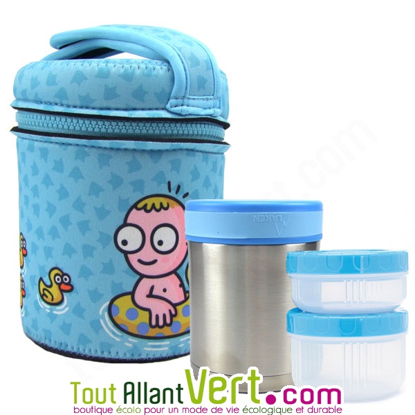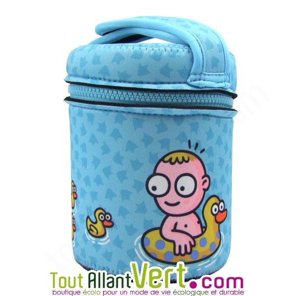 Lunch box isotherme en acier inoxydable de 1 litre et housse Bleu Petits canards.- 100% étanche et hermétique