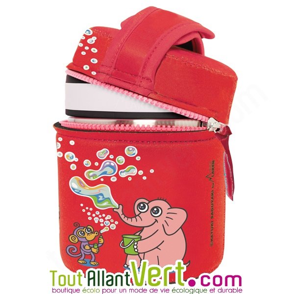 Lunch box isotherme en acier inoxydable de 1 litre et housse Rouge éléphant et singe.- 100% étanche et hermétique
