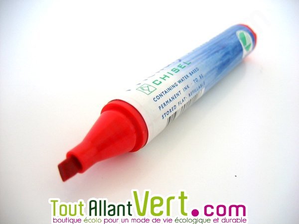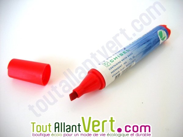 Encre permanente à l'eauCorps en papier recyclé et en cireSans solvantEncre rougePointe biseautéeLabellisé "Nordic Ecolabel" (Suède)Traditionnellement, les marqueurs sont à base de Xylène, un produit très toxique. Sans solvant, ce marqueur est sans danger et peut écrire jusqu'à enviro...Lire la suite...Autres produits susceptibles de vous intéresser