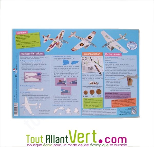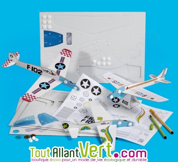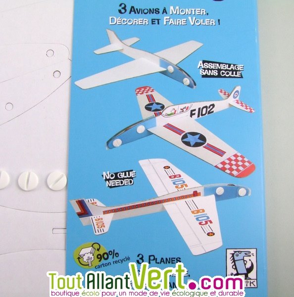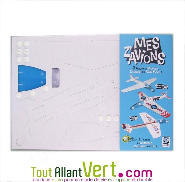 Mes Z'avions, avion carton recyclé à construire et décorer3 avions à monter, décorer et faire voler ! Un jeu idéal pour un groupe d’enfants. Chacun monte et décore son avion, puis ce sont les parties de vols. A qui volera le plus loin !