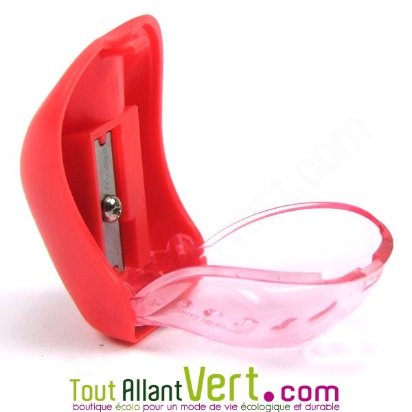 Un mini taille-crayon solide qui se glisse dans la trousse sans prendre trop de place. Son réservoir recevra les copeaux en attendant d'être vidé à la poubelle. La réserve s'ouvre et se referme, mais reste attachée, elle ne peut pas être perdue !