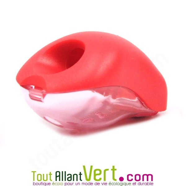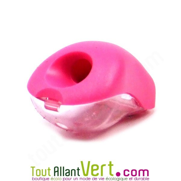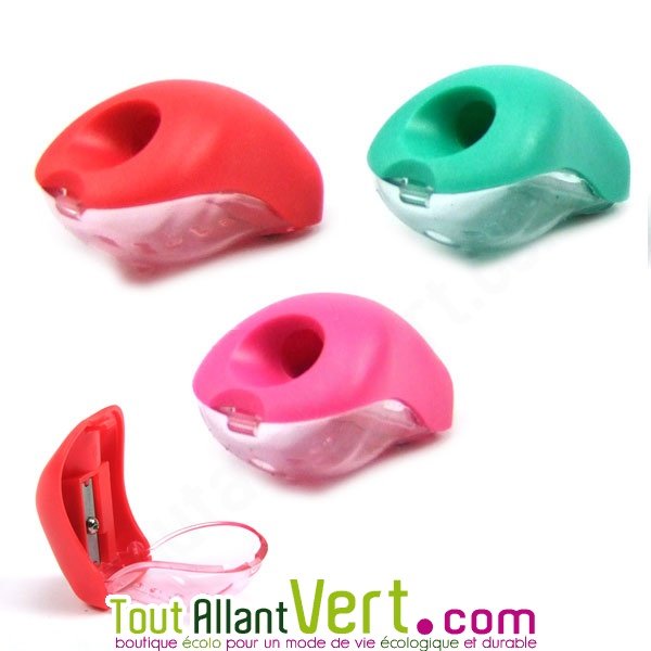 Mini taille-crayon 1 trou idéal pour la trousse d'école. En plastique recyclé, issu du recyclage de bouteilles d'eau en plastique. H5cm x 3cm. Coloris au choix : Rose, rouge ou vert clair. Fabriqué en Chine.