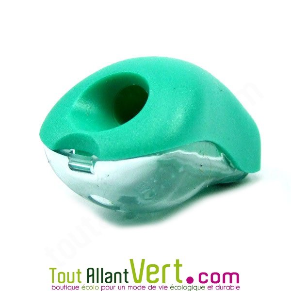 Taille-crayon en plastique recyclé Vert clair avec réservoir.- Mini, idéal pour la trousse, seulement 4,5cm !