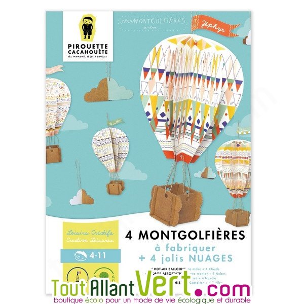 Prix de 4 montgolfières en carton à fabriquer + 4 jolis nuages, 4-11 ans : 13.95€