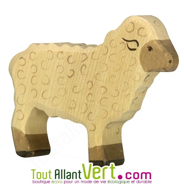 Mouton blanc en bois debout 8,5 cm.Une grande figurine en bois d'une suprenante qualité!
