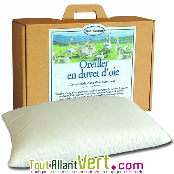 Oreiller en duvet d'oie bio, 65 x 65 cm.Le duvet d'oie est capable d'une prise d'air sans équivalent dans la nature, le flocon de duvet procure le meilleur des amortis souples et un confort incomparable.