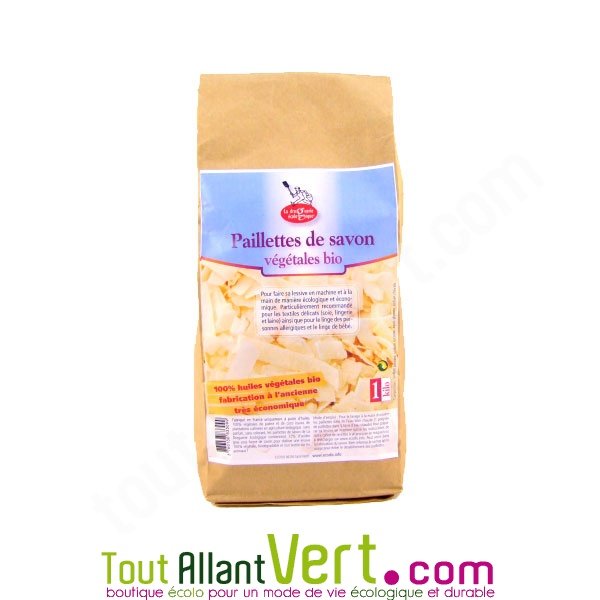 Paillettes de savon végétales bio pour faire sa lessive écolo du linge, 1Kg.Les paillettes les plus écolo sur le marché !