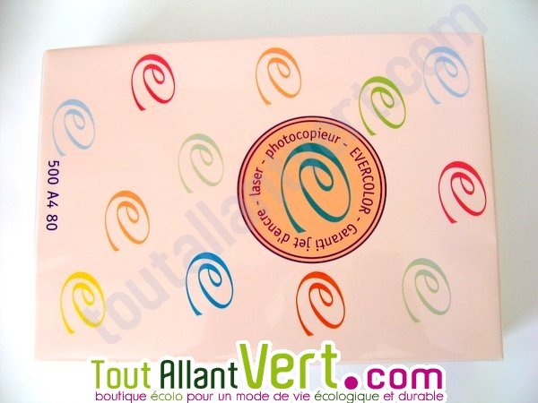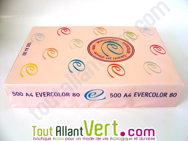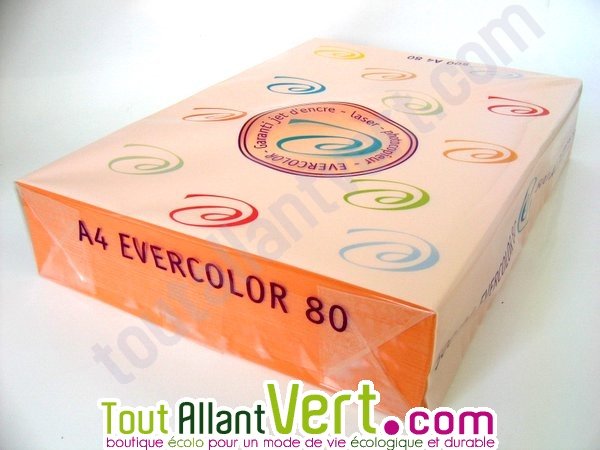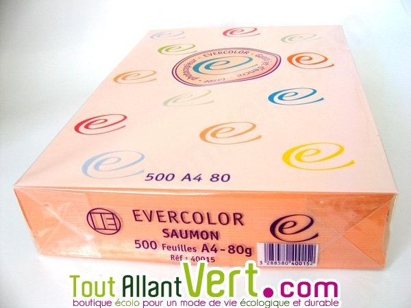 de EvercolorPapier 100% recyclé, ramette de 500 feuilles, format A4 (21 x 29.7 cm) 80 g/m2 coloris Saumon Garanti en passage copieurs, imprimantes laser et jet Label Ange bleu, écolabel allemand Au sein de notre gamme nous vous offrons le Evercolor, papier coloré recyclé. La solution non polluante. Evercolor, produit de 100% de la pâte recyclé vous offre un éventail de 4 couleurs pastels et de 5 coul...Ce produit ne fait plus partie de notre catalogueCet article n'est plus disponible à la vente chez nous.Découvrez d'autres produits