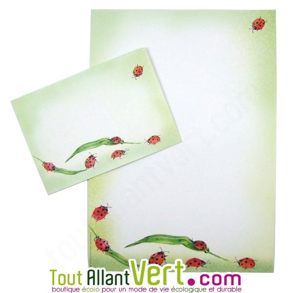 Papier à lettre Coccinelles et enveloppes assorties 100% recyclé