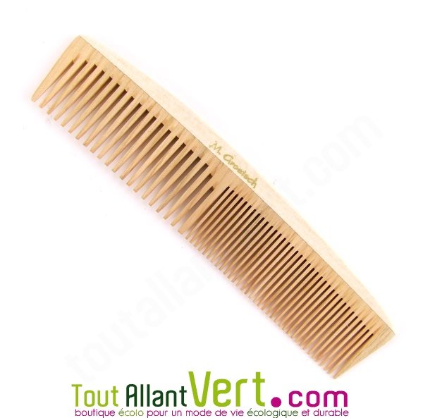 Les bois utilisés sont non traités et proviennent de la région Allemande où les peignes sont fabriqués. Le bois a une action naturelle contre les bactéries et les virus grâce au huile, résines et terpènes qu'il contient naturellement.