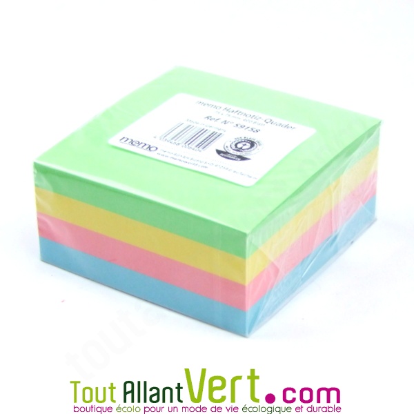 Ces pense-bêtes repositionnables aux couleurs pastels sont en papier recyclé munis du logo "ange bleu" garantissant le recyclage de papier de qualité inférieure (déchets ménagers). Une petite bande autoadhésive au dos permet de coller les feuillets sur toutes sortes de supports sans les endommager. Se présente en un petit bloc de feuilles détachables.- Papier 100% recyclé
