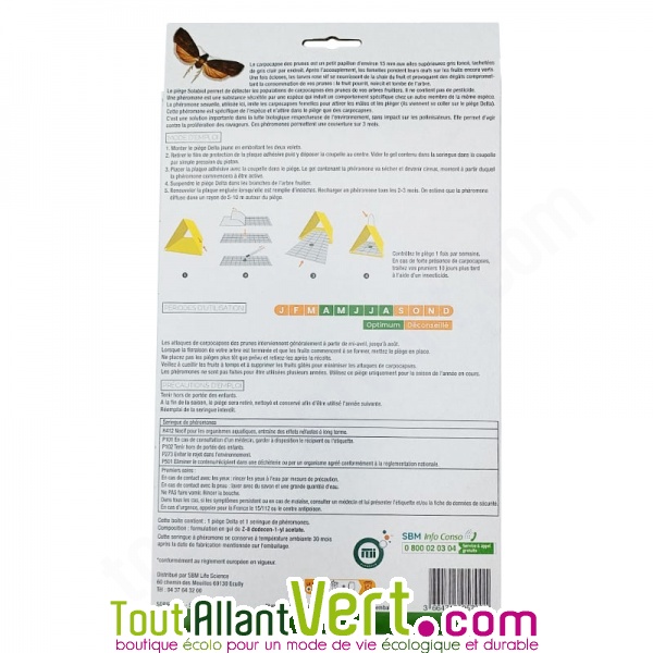 - Livré avec 1 piège delta, 2 plaques engluées + 1 seringue + 1 capsule pour la phéromone sexuelles + 1 notice