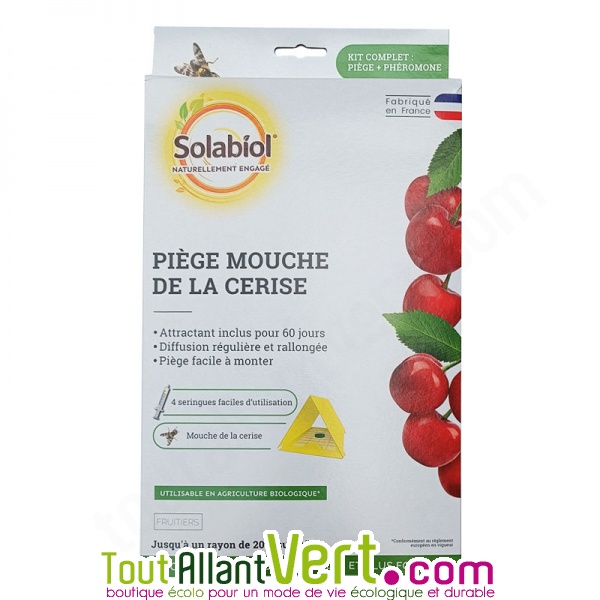 de Solabiol★ ★ ★ ★ ★9 avis clientsKit complet : piège + phéromone. Ce piège surveille vos cerisiers sur un rayon de 20 mètres autour de l'arbre. 4 seringues d'attractifs incluses pour 60 jours de surveillance. Facile à monter, il diffuse régulièrement. Utilisable en Agriculture Biologique.