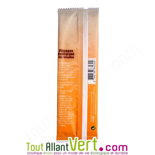 Piège à mouches et moucherons sous forme de plaquettes engluées.Prêtes à l'emploi, ces plaquettes diffusent un parfum de fruits mûrs. Les plaquettes engluées attirent ainsi irrésistiblement mouches et moucherons. La brillance de la surface collante renforce l'attractivité du piège. L'invasion des mouches est rapidement maitrisée.