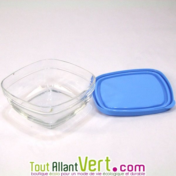 Ce saladier ou ravier en verre a une forme carré et un couvercle bleu, 14cm x 14cm x 6cm (61cl).Idéal pour conserver ou présenter les aliments! Equipé d'un couvercle, cette boite de conservation est hermétique et préserve vos aliments. Une fois le couvercle enlevé, elle sera un plat de présentation en verre.