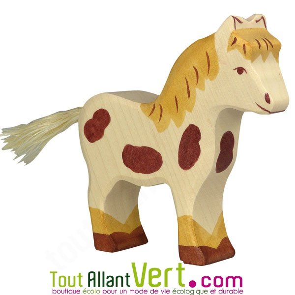 Poney avec tâches marron en bois 12 cm.Une grande figurine en bois d'une suprenante qualité!